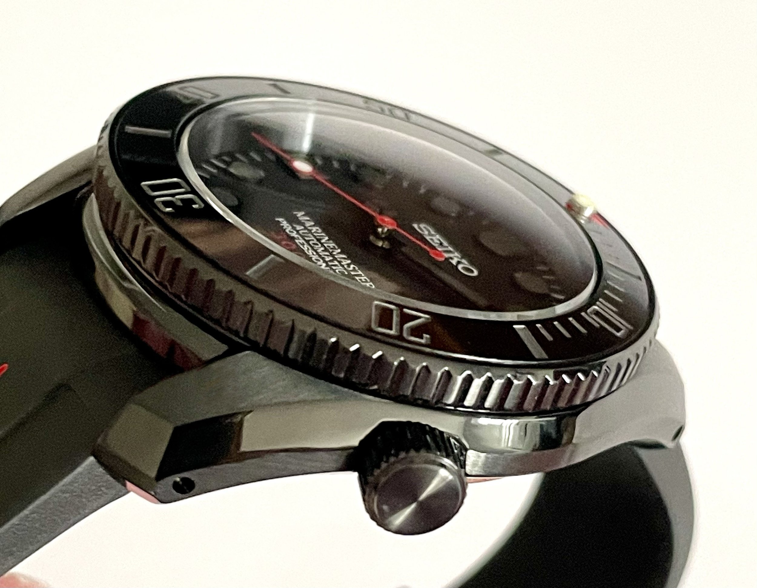 All Black Marine Master with red 300m