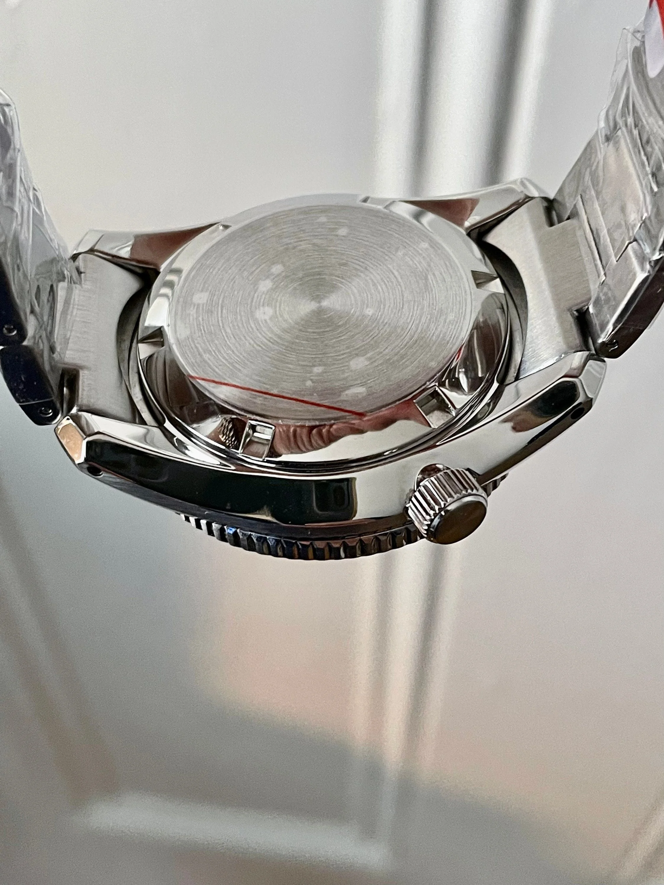 316 Stainless Steel Case and Fitted Oyster bracelet with fat spring bars Domed Sapphire crystal and Milled clasp 120 click coin bezel with Silver and Black insert and C3 Lume Pip Seiko High Accuracy NH36A calibrated movement (runs 0 seconds fast (should run -5 to +5 seconds per day, high amplitude of 264 and .1 beat error from my timegrapher which are all good numbers. Pure White Professional Dial with silver/white indices and C3 Luminous Silver hands with a Red accent Second hand and C3 luminous Silver case back that has plastic on to protect until you remove. Size is 42mm, 48mm lug to lug and 20mm bracelet size.